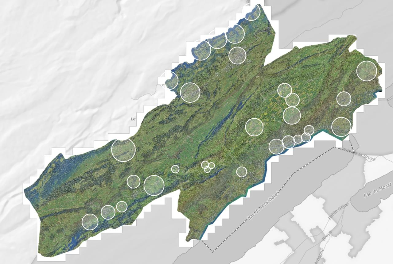 👉 Au vu des signalements récents sur www.frelonasiatique.ch, entre 20 et 30 nids restent à découvrir dans les zones suivantes: